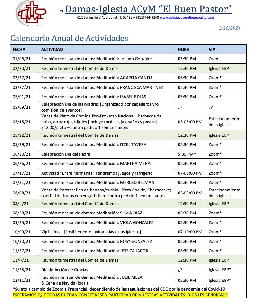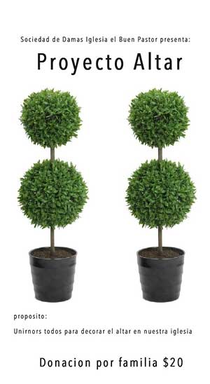 La Sociedad de Damas quiere apoyar la decoracion del altar en la iglesia EL Buen Pastor y se donara $20 por familia.